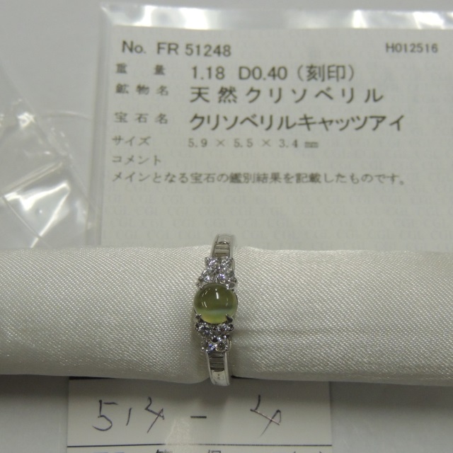 リング キャッツアイ ダイヤ Pt900 5.70g 中ソ 石目:C1.18 D0.40