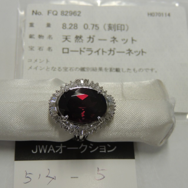 リング ロードライトガーネット ダイヤ Pt900 8.60g 中ソ 石目:G8.28 D0.75