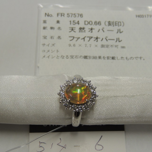 リング ファイヤーオパール ダイヤ Pt900 8.20g 中ソ 石目:1.54 D0.66