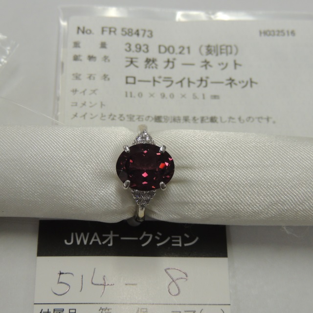 リング ロードライトガーネット ダイヤ Pt900 6.30g 中ソ 石目:G3.93 D0.21
