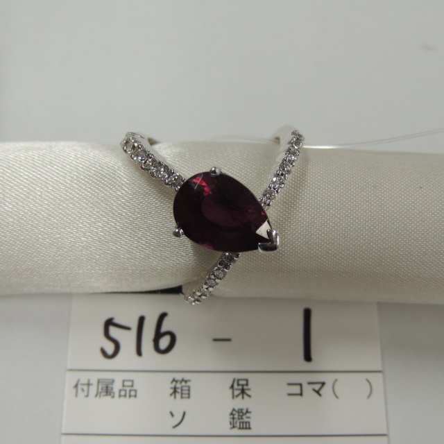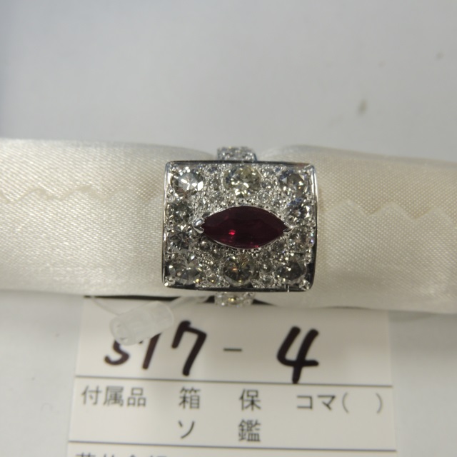 リング ルビー ビルマ産 ダイヤ K18WG 8.30g 鑑
