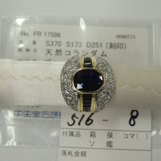 リング サファイア ダイヤ Pt900 15.60g GRJソ 石目:8.86 1.63