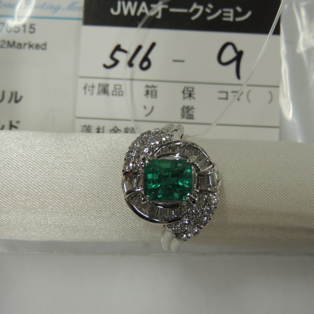 リング エメラルド ダイヤ Pt900 8.80g GRJソ 石目:1.66 D1.02