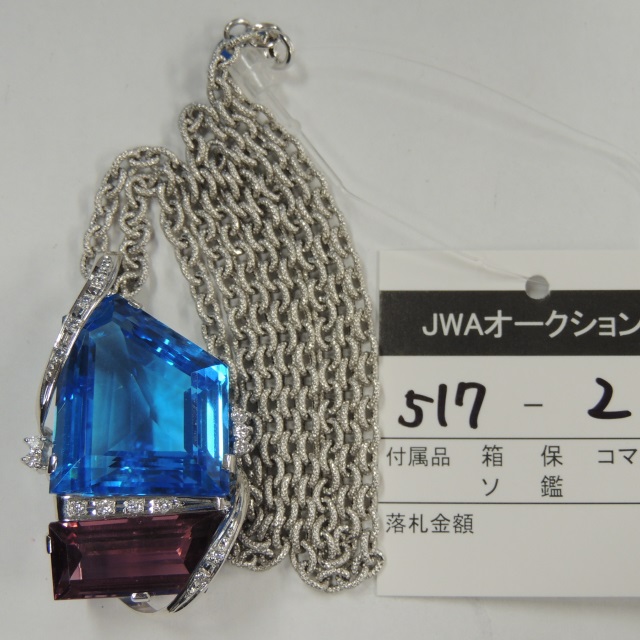 ペン・ネック ブルートパーズ トルマリン 750/Pt900 35.20g GRJ鑑 石目:58.32 12.84 0.28