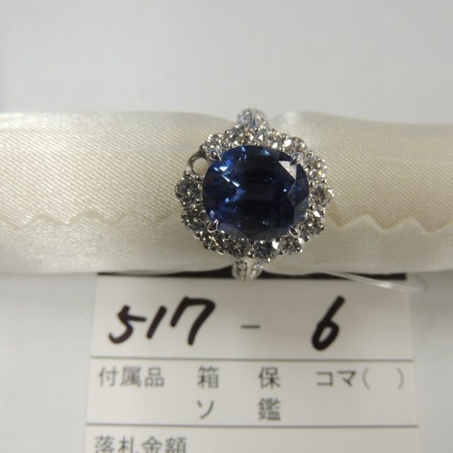 リング サファイア ダイヤ 1Pメレ取 Pt900 9.30g 鑑 石目:7.01 1.54