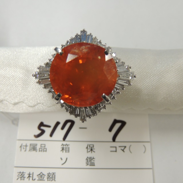 リング オレンジサファイア ダイヤ Pt850 16.60g 中鑑 石目:19.49 1.50