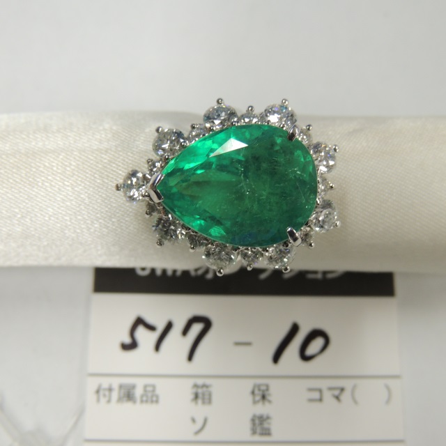 リング エメラルド コロンビア産 ダイヤ Pt900 13.50g GRS 鑑 石目:10.26 1.98