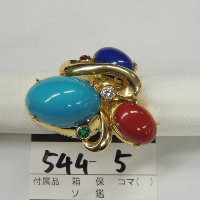 リング トルコ石 サンゴ ラピスラズリ K18 29.00g 石目:TQ18.72 CO6.13 LL6.17 R0.13 E0.18 D0.13