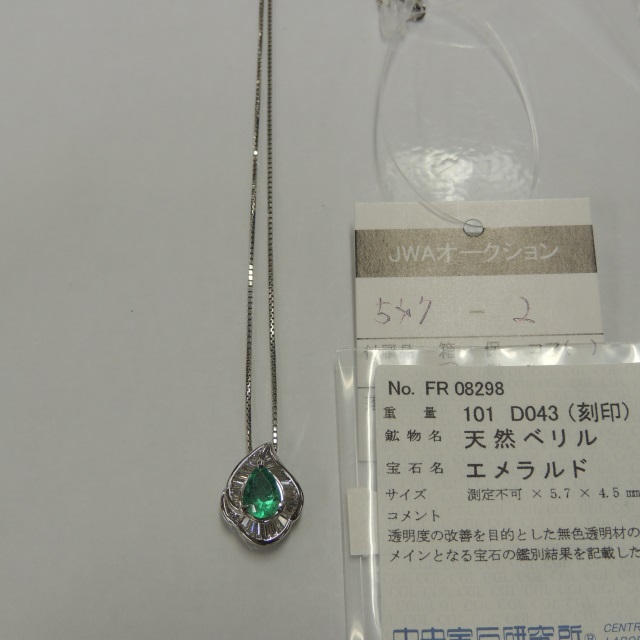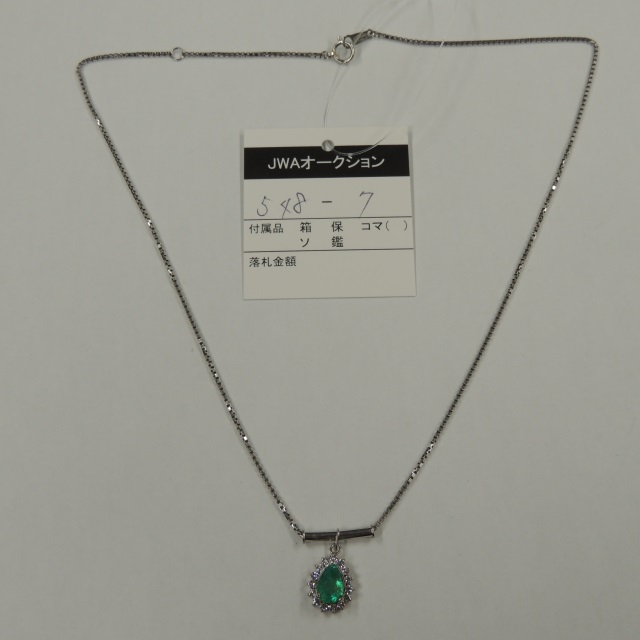 ペン・ネック エメラルド Pt900/Pt850 6.20g 中ソ 石目:E1.01 D0.43