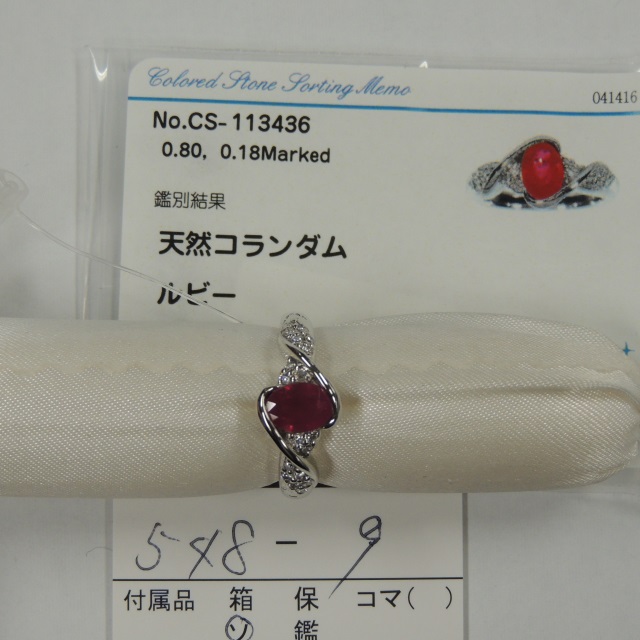 リング ルビー Pt900 7.60g GRJソ 石目:R0.80 FD0.18
