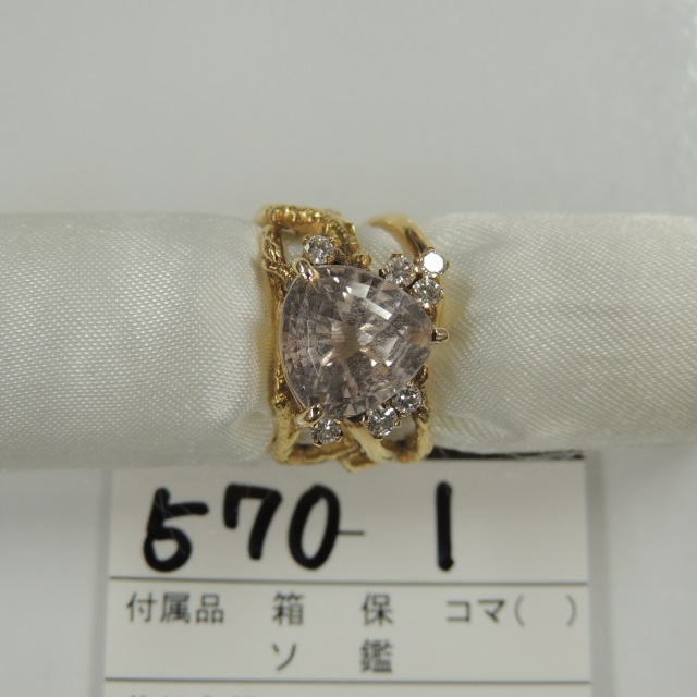 リング クンツァイト ダイヤ 作家刻印有 K18 10.30g 石目:5.25 0.248