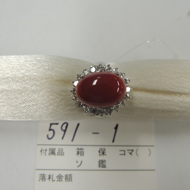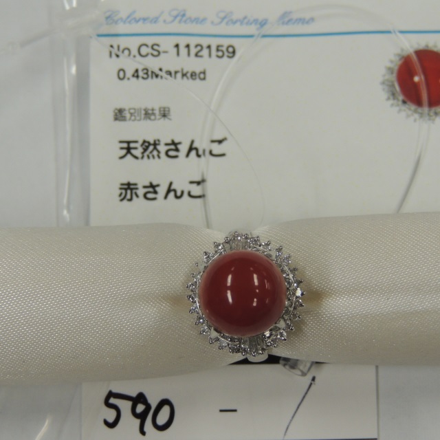 リング サンゴ ダイヤ Pt900 7.30g 石目:5.58 D0.67