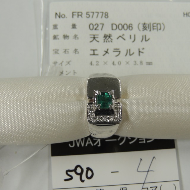 リング エメラルド ダイヤ Pt900 7.10g 石目:E0.33 FD0.32