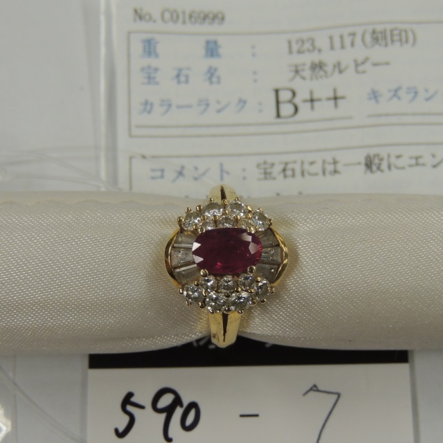 リング ルビー ダイヤ K18 6.10g ソ 石目:R1.23 D1.17