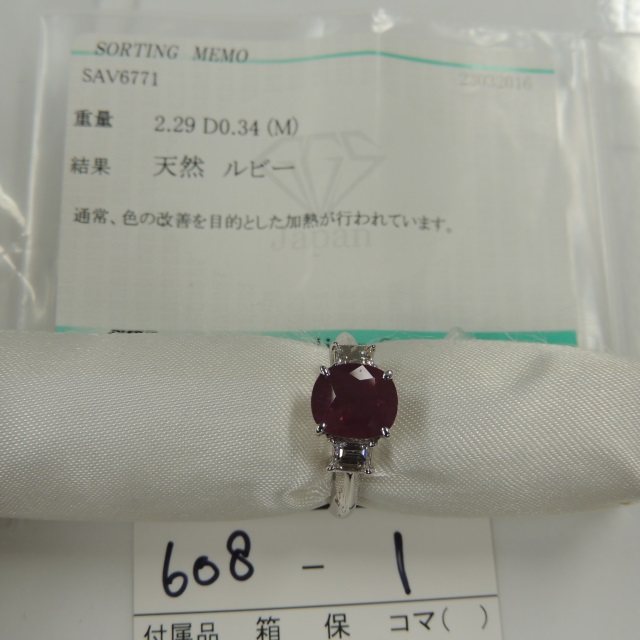 リング ルビー ダイヤ Pt900 5.00g ソ 石目:R2.29 D0.34