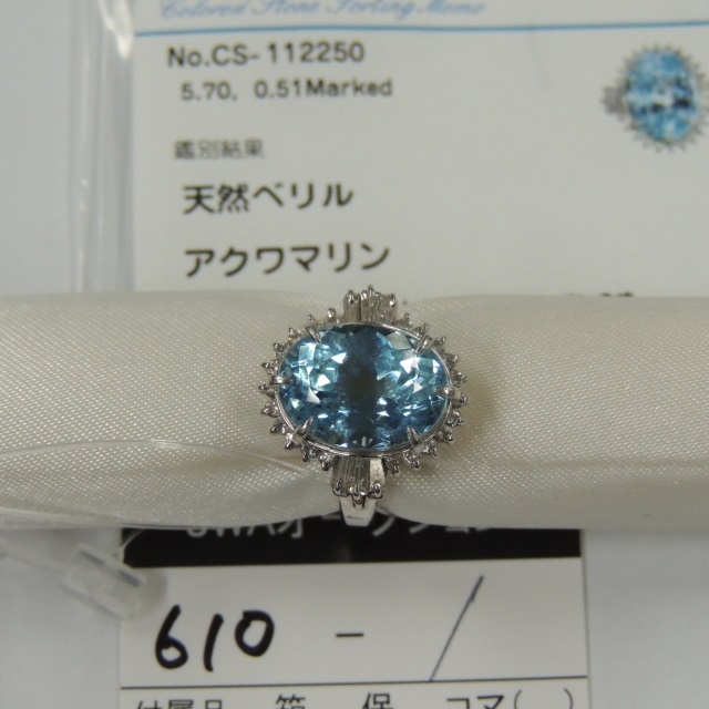 リング アクアマリン ダイヤ Pt900 9.40g GRJソ 石目:AQ5.70 D0.51
