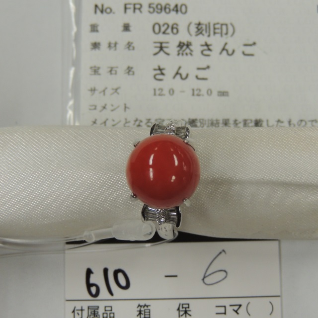 リング サンゴ 12mm ダイヤ Pt900 10.20g 中ソ 石目:D0.26