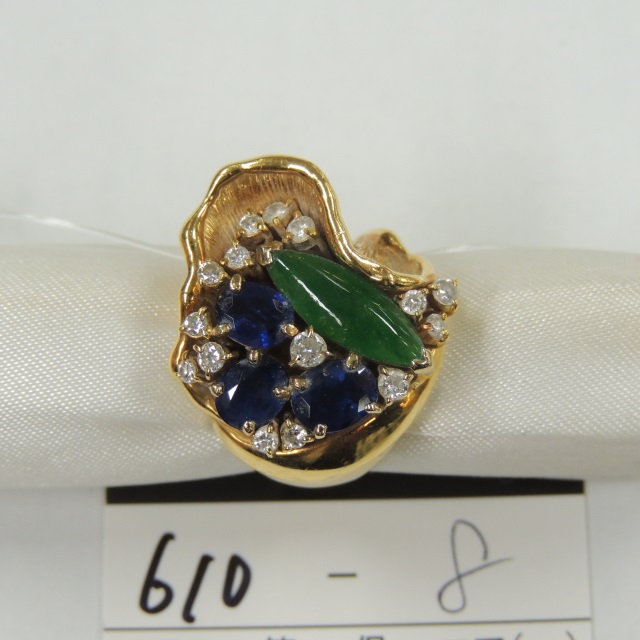 リング ヒスイ サファイア ダイヤ K18 19.10g 石目:1.88 1.55 D0.45
