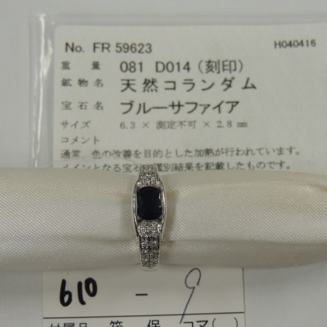 リング サファイア ダイヤ Pt900 6.20g 中ソ 石目:S0.81 D0.14