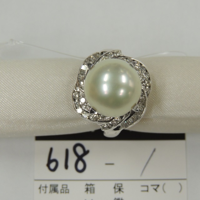 リング パール 12.8mm ダイヤ Pt900 13.50g 石目:D0.85