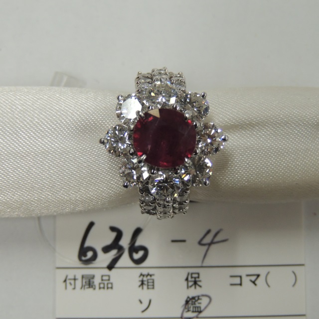 リング ルビー ダイヤ Pt900 15.80g 中鑑 石目:2.604 3.70