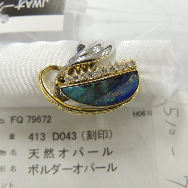 リング ボルダーオパール K18/Pt900 14.40g 中ソ 石目:O4.13 D0.43