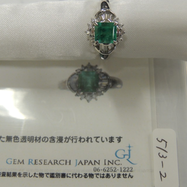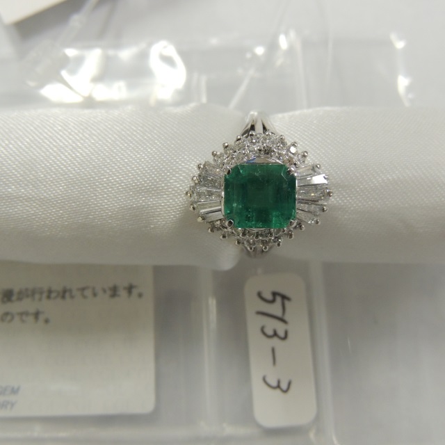 リング エメラルド Pt850 7.00g GRJソ 石目:E1.12 FD0.50