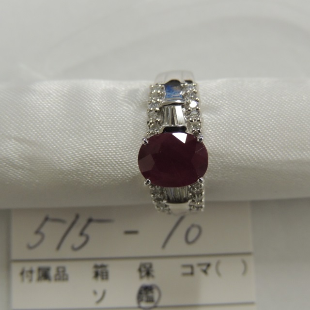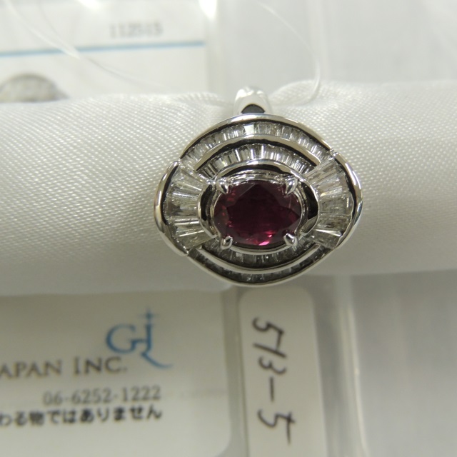 リング ルビー Pt900 7.80g GRJソ 石目:R1.099 FD1.00