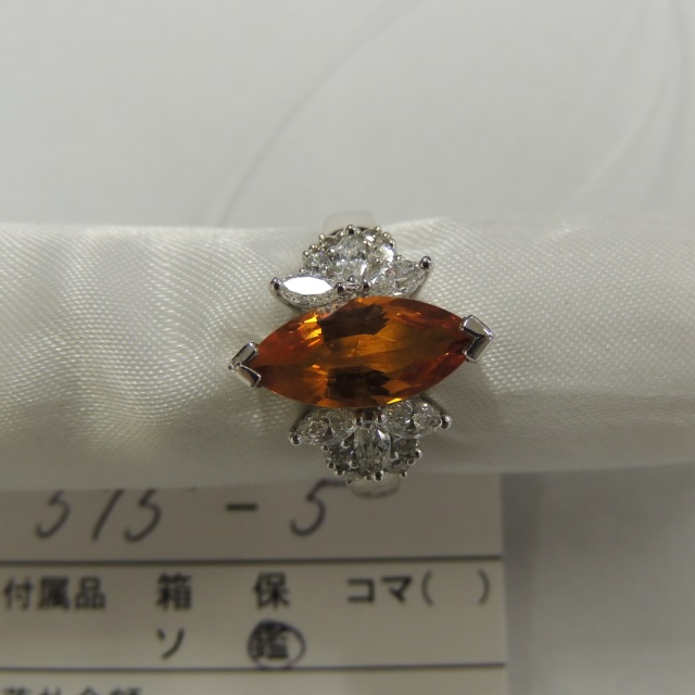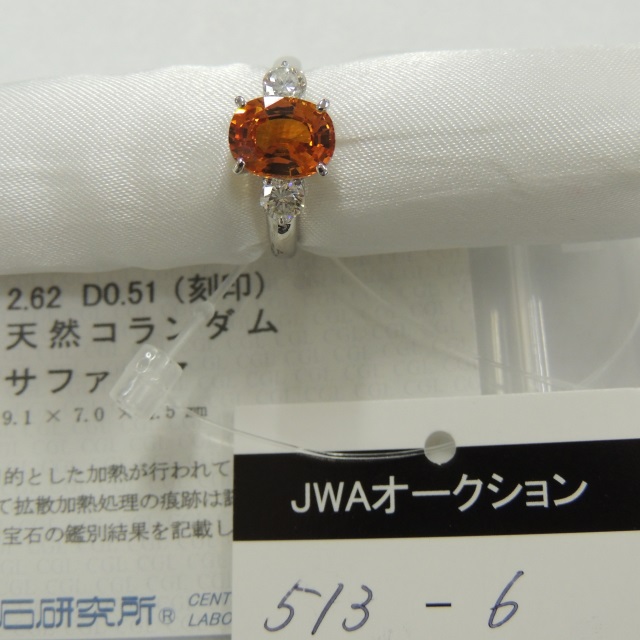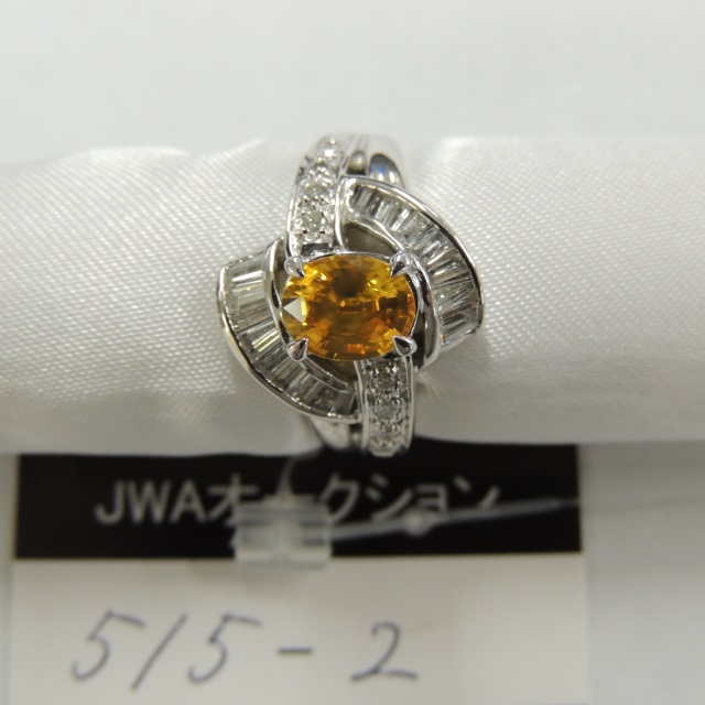 リング オレンジサファイア Pt900 5.10g 鑑 中ソ 石目:OS2.62 FD0.51