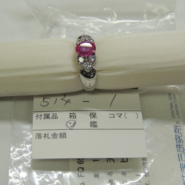 リング ピンクサファイア Pt900 6.50g 中ソ 石目:S1.077 D0.65