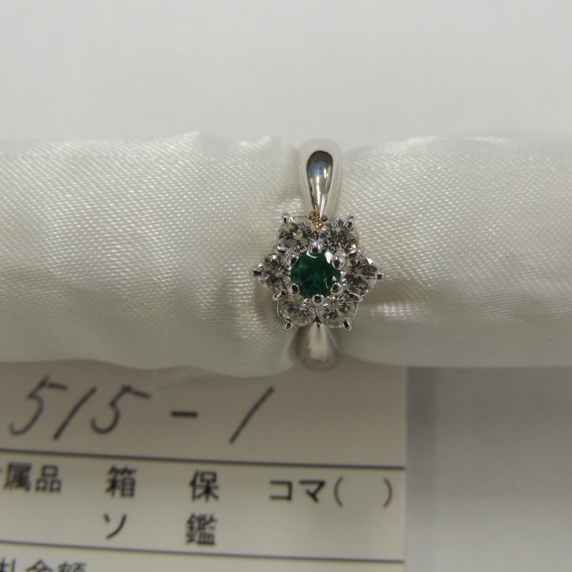 リング エメラルド ダイヤ Pt900 5.20g 中ソ 石目:E1.04 FD0.57