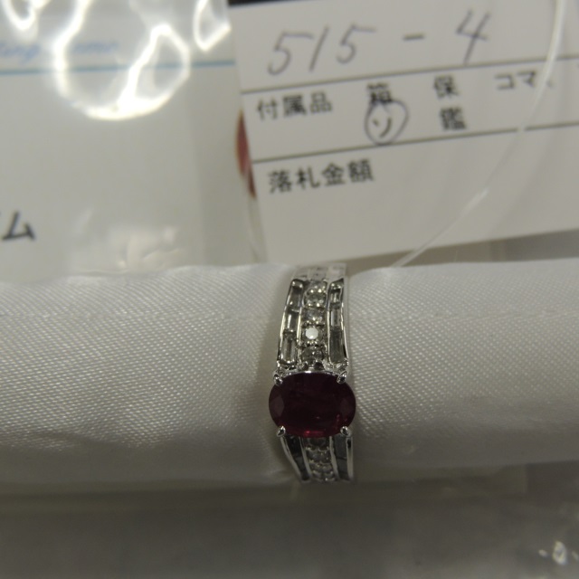 リング ルビー ピジョンブラッド ビルマ産 Pt900 7.20g 鑑 石目:R3.54 FD0.68