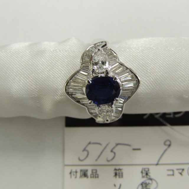 リング サファイア ダイヤ Pt900 9.60g 中鑑 石目:S1.416 FD1.70