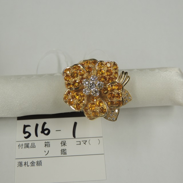 リング ゴールデンサファイア ダイヤ K18 18.30g GRJ鑑 石目:5.48 FD0.96