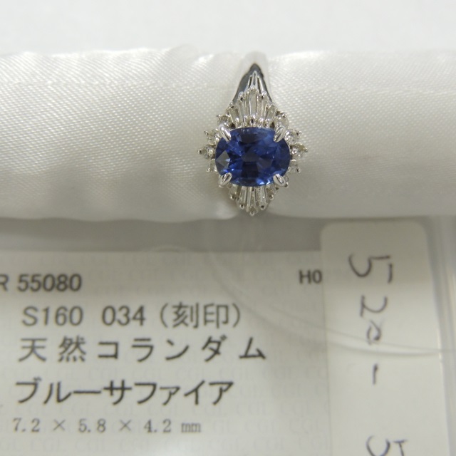 リング サファイア Pt900 5.00g 中ソ 石目:S1.60 D0.34