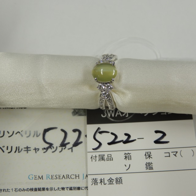 リング クリソベリルキャッツアイ ダイヤ Pt900 7.70g GRJソ 石目:1.61 FD0.44