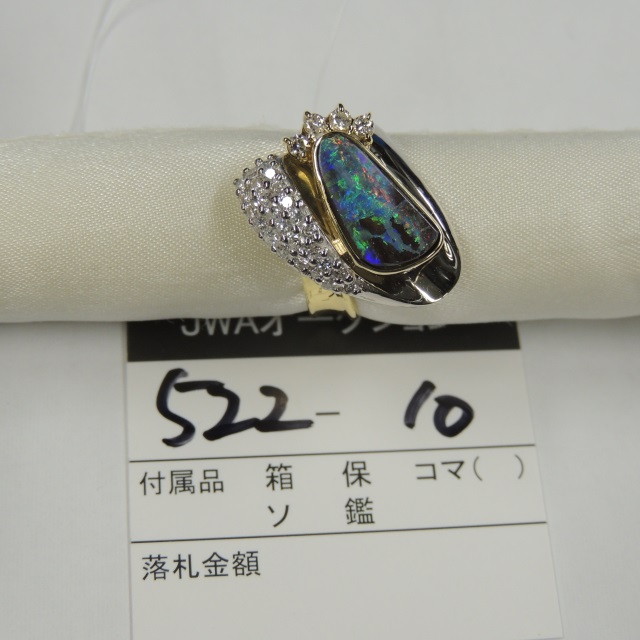 リング ボルダーオパール ダイヤ Pt900 7.00g 中ソ 鑑 石目:2.40 FD0.50