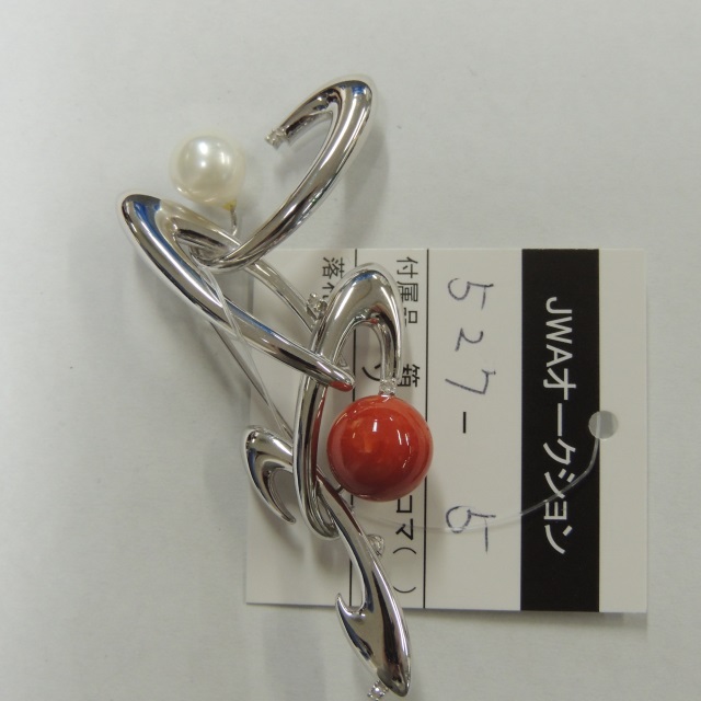 ペン・ブローチ サンゴ 11.2mm パール 8.6mm K18WG 14.50g 石目:D0.06