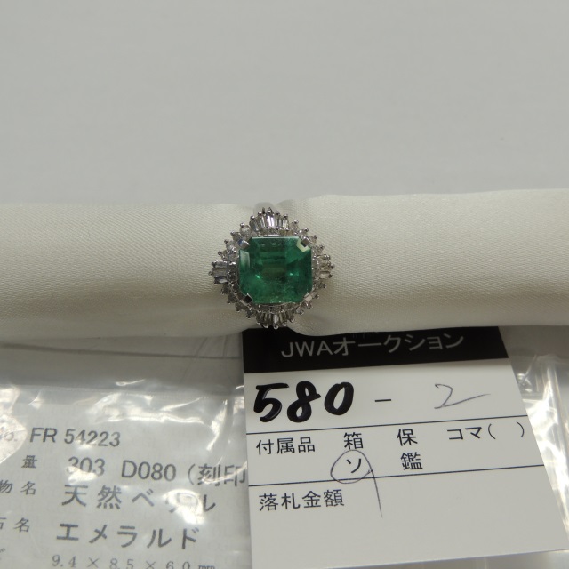 リング エメラルド ダイヤ Pt900 7.30g 中ソ 石目:E3.03 D0.80