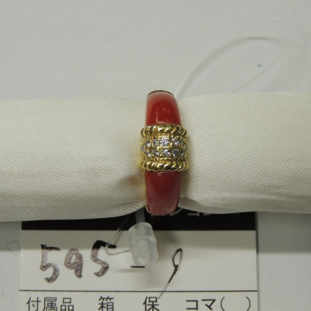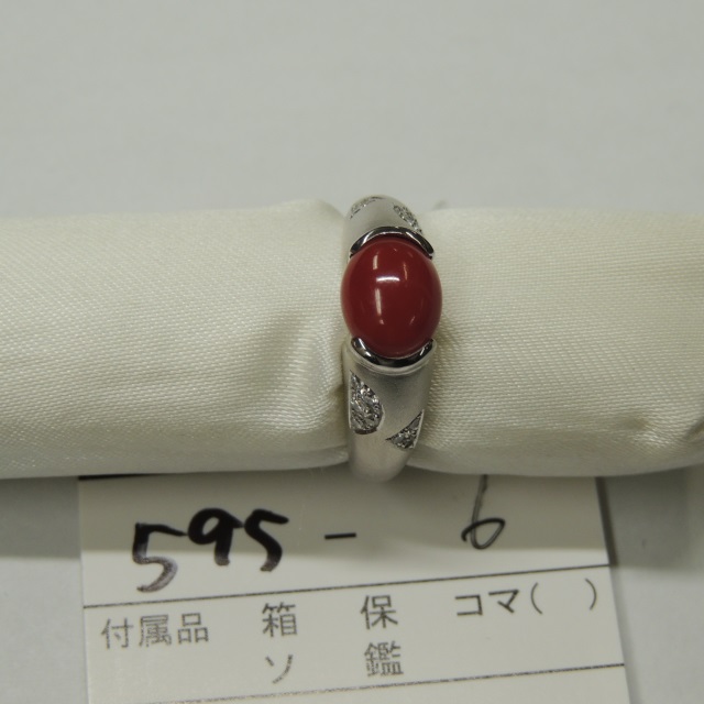 リング サンゴ ダイヤ K18WG 6.30g 石目:D0.11