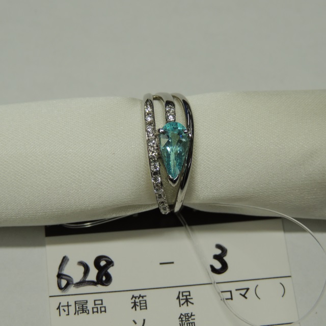 リング パライバトルマリン Pt900 4.90g GRJ鑑 石目:PT0.64 D0.14