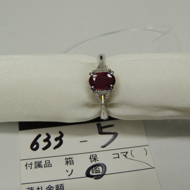 リング ルビー ピジョンブラッド ビルマ産 Pt900 3.70g 鑑 石目:R1.01 D0.32