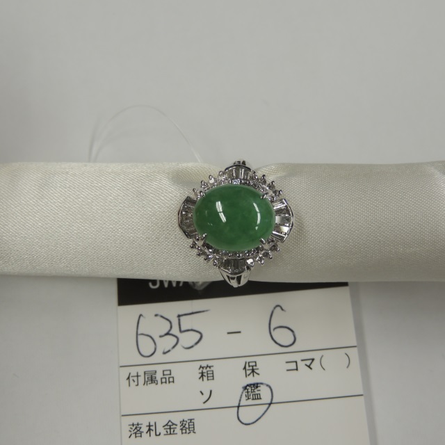 リング ヒスイ ダイヤ Pt900 10.10g 鑑 石目:4.75 D0.65
