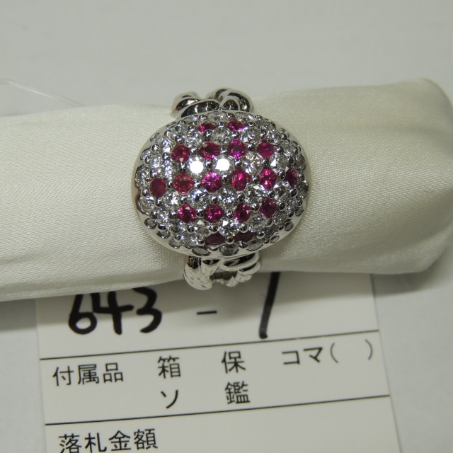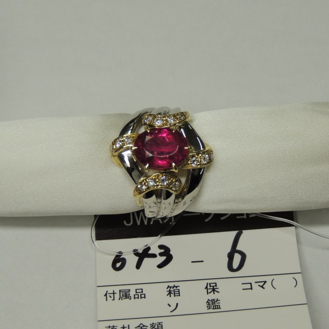 リング ルビー Pt900 15.50g 石目:R3.53 D0.52