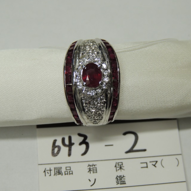 リング ルビー ピジョンブラッド ミャンマー産 Pt900 18.20g 鑑 石目:R1.19 D0.48