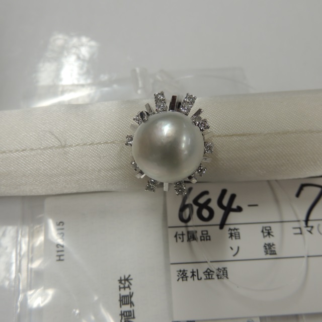 リング 南洋パール 12.8mm Pt900 13.30g 中ソ 石目:0.41