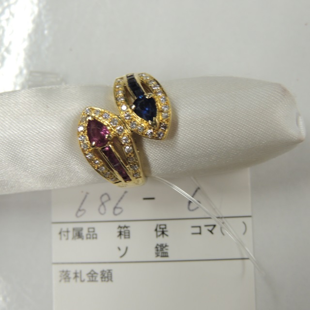 リング マルチ サファイア ルビー ダイヤ K18 7.60g 石目:S0.37 S0.21 R0.35 R0.22 FD0.30