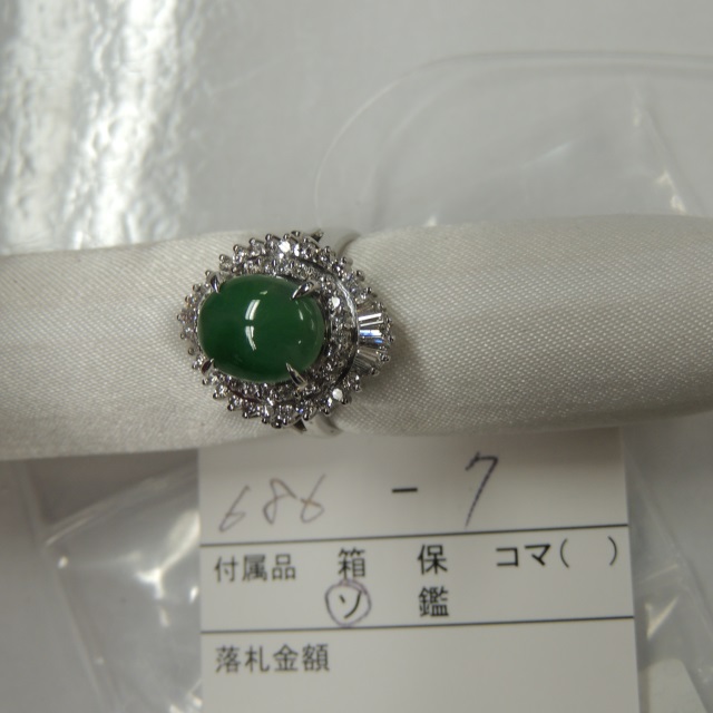 リング ヒスイ ダイヤ Pt900 9.20g 中ソ 石目:FD0.75