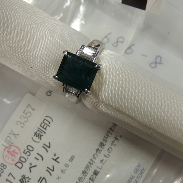 リング エメラルド ダイヤ Pt900 7.90g 中ソ 中鑑 石目:E3.17 FD0.500