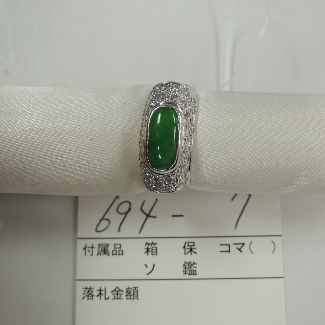 リング ヒスイ ダイヤ Pt900 9.10g 石目:JA3.30 FD0.25